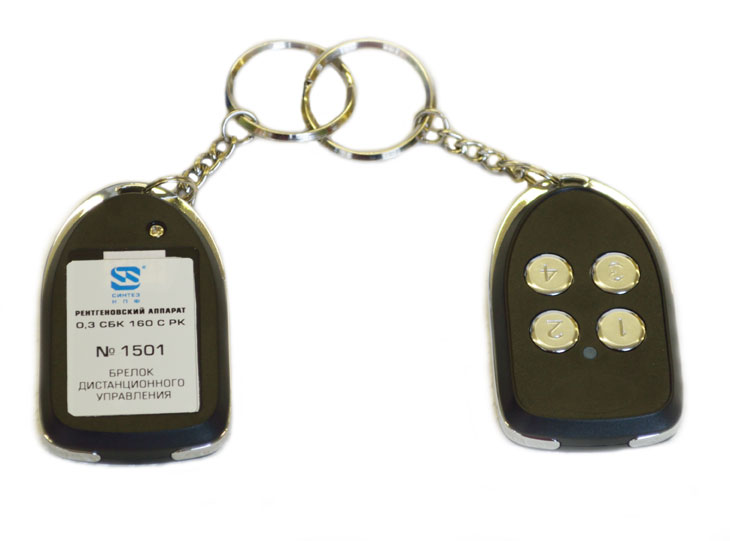 Система управления рентгеновским аппаратом (модификации с индексом "РК") обеспечивает передачу четырех команд управления посредством кратковременных нажатий пальцем соответствующих кнопок брелка.