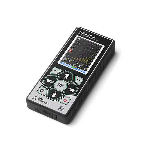 Портативный, полностью цифровой, ультразвуковой дефектоскоп ТЕХНОСКАН общего назначения с массой менее 300 гр. представляет собой простой в настройке и эксплуатации инструмент для контроля в труднодоступных местах и в прочих условиях, когда габариты и вес инструмента являются критичными. Несмотря на малые размеры, обладает хорошим быстродействием, современным морозостойким TFT экраном с тремя цветовыми схемами (в том числе для работы при ярком солнечном свете) и всеми основными функциями современного дефектоскопа: